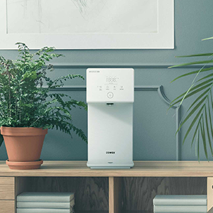 卓上最小クラスで46物質除去の高性能。弱冷水機能で常温に近い水も使える。デザイン性も高く、省スペース重視の方に
