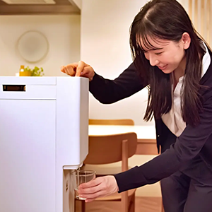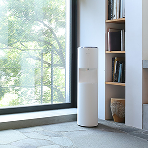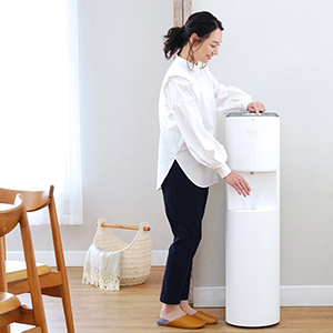 業界初の加湿・噴霧機能付きウォーターサーバー。次亜塩素酸水で空間除菌も可能。1台2役でスペース効率抜群、乾燥対策にも最適